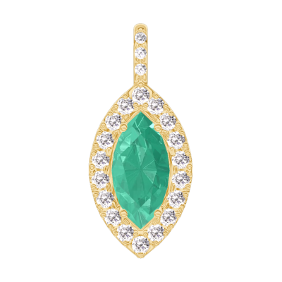 « L'ATELIER » NR 208021Zawieszka Żółte złoto 750 - Szmaragd Markiza 0.3 karat - Korona z kamieni Diament - Oprawa Diament - Bez łańcuszka