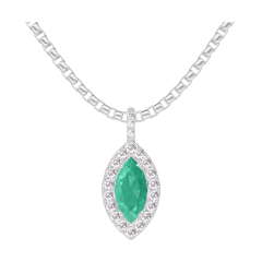 « L'ATELIER » NR 208055Zawieszka Białe złoto 750 - Szmaragd Markiza 0.3 karat - Korona z kamieni Diament - Oprawa Diament - Łańcuszek Wenecjana
