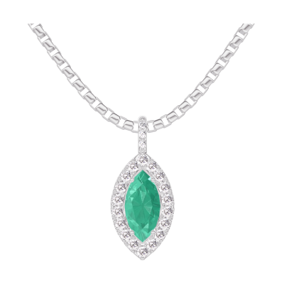« L'ATELIER » NR 208056Zawieszka Białe złoto 375 - Szmaragd Markiza 0.3 karat - Korona z kamieni Diament - Oprawa Diament - Łańcuszek Wenecjana