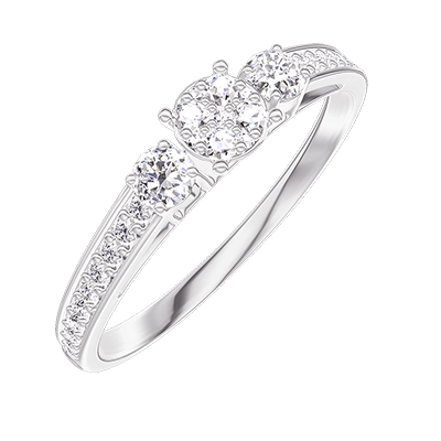 « L'ATELIER » NR 209028Pierścionek Białe złoto 375 - Klaster naturalnych diamentów okrągły odpowiednik 0.3 - Kamienie boczne Diament - Oprawa Diament 4.5