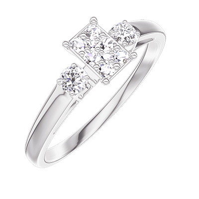 « L'ATELIER » NR 209223Pierścionek Białe złoto 750 - Klaster naturalnych diamentów Prostokąt odpowiednik 0.3 - Kamienie boczne Diament