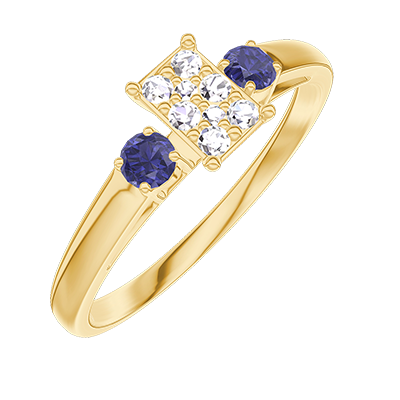 « L'ATELIER » NR 209262Pierścionek Żółte złoto 375 - Klaster naturalnych diamentów Prostokąt odpowiednik 0.3 - Kamienie boczne Niebieski szafir