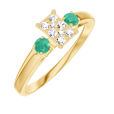 « L'ATELIER » NR 209282Pierścionek Żółte złoto 375 - Klaster naturalnych diamentów Prostokąt odpowiednik 0.3 - Kamienie boczne Szmaragd