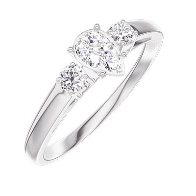 « L'ATELIER » NR 209424Pierścionek Białe złoto 375 - Klaster naturalnych diamentów Gruszka odpowiednik 0.3 - Kamienie boczne Diament