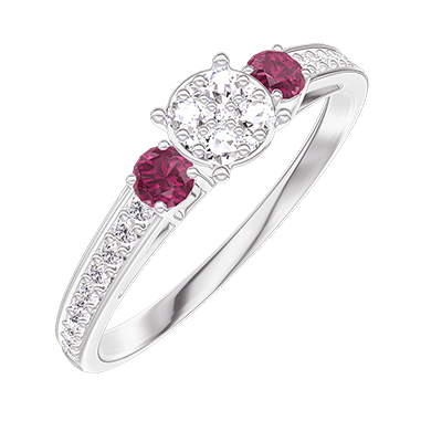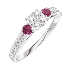 « L'ATELIER » NR 209647Pierścionek Białe złoto 750 - Klaster naturalnych diamentów okrągły odpowiednik 0.5 - Kamienie boczne Rubin - Oprawa Diament 4.5