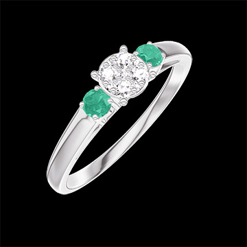 « L'ATELIER » Nº209683Pierścionek Białe złoto 750 - Klaster naturalnych diamentów okrągły odpowiednik 0.5 - Kamienie boczne Szmaragd 4.5