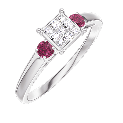 « L'ATELIER » NR 209743Pierścionek Białe złoto 750 - Klaster naturalnych diamentów „Księżniczka” odpowiednik 0.5 - Kamienie boczne Rubin