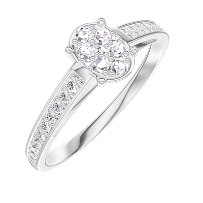 « L'ATELIER » NR 209907Pierścionek Białe złoto 750 - Klaster naturalnych diamentów Owal odpowiednik 0.5 - Oprawa Diament