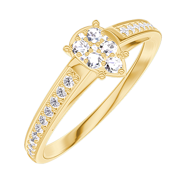 « L'ATELIER » NR 210006Pierścionek Żółte złoto 375 - Klaster naturalnych diamentów Gruszka odpowiednik 0.5 - Oprawa Diament