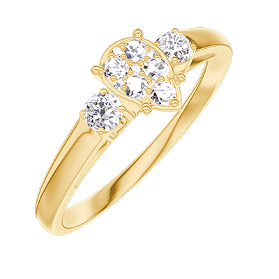 « L'ATELIER » NR 210022Pierścionek Żółte złoto 375 - Klaster naturalnych diamentów Gruszka odpowiednik 0.5 - Kamienie boczne Diament
