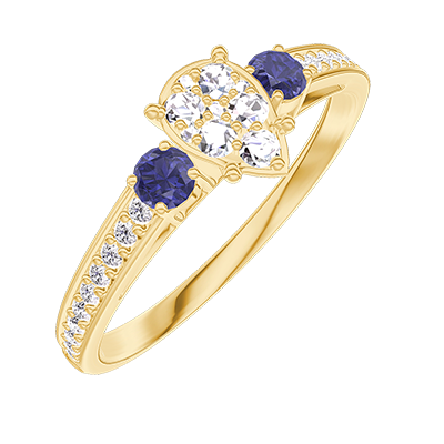 « L'ATELIER » NR 210066Pierścionek Żółte złoto 375 - Klaster naturalnych diamentów Gruszka odpowiednik 0.5 - Kamienie boczne Niebieski szafir - Oprawa Diament