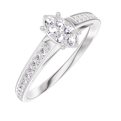 « L'ATELIER » NR 210108Pierścionek Białe złoto 375 - Klaster naturalnych diamentów Markiza odpowiednik 0.5 - Oprawa Diament