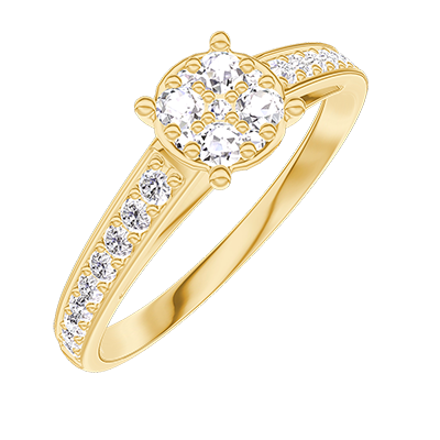 « L'ATELIER » NR 210205Pierścionek Żółte złoto 750 - Klaster naturalnych diamentów okrągły odpowiednik 0.7 - Oprawa Diament 4.9