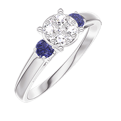 « L'ATELIER » NR 210264Pierścionek Białe złoto 375 - Klaster naturalnych diamentów okrągły odpowiednik 0.7 - Kamienie boczne Niebieski szafir 4.9