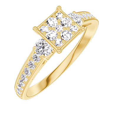« L'ATELIER » NR 210325Pierścionek Żółte złoto 750 - Klaster naturalnych diamentów „Księżniczka” odpowiednik 0.7 - Kamienie boczne Diament - Oprawa Diament