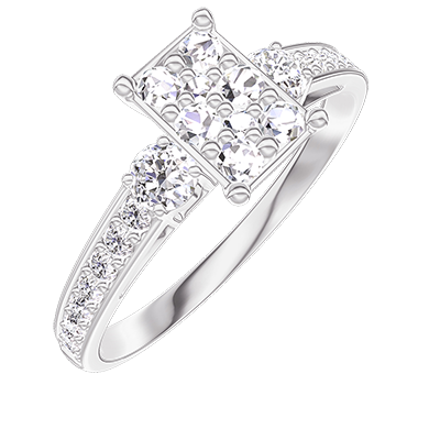 « L'ATELIER » NR 210428Pierścionek Białe złoto 375 - Klaster naturalnych diamentów Prostokąt odpowiednik 0.7 - Kamienie boczne Diament - Oprawa Diament