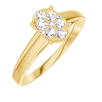 « L'ATELIER » Nº210502Pierścionek Żółte złoto 375 - Klaster naturalnych diamentów Owal odpowiednik 0.7