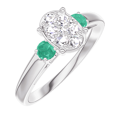 « L'ATELIER » Nº210584Pierścionek Białe złoto 375 - Klaster naturalnych diamentów Owal odpowiednik 0.7 - Kamienie boczne Szmaragd