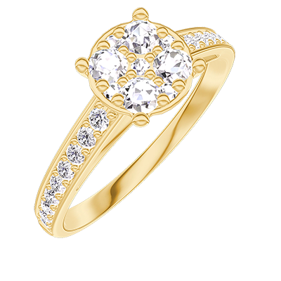 « L'ATELIER » NR 210806Pierścionek Żółte złoto 375 - Klaster naturalnych diamentów okrągły odpowiednik 1 - Oprawa Diament 4.8