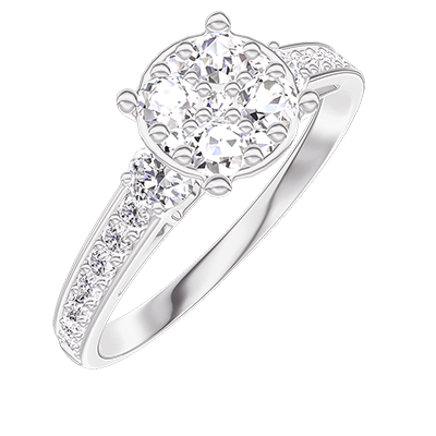 « L'ATELIER » NR 210827Pierścionek Białe złoto 750 - Klaster naturalnych diamentów okrągły odpowiednik 1 - Kamienie boczne Diament - Oprawa Diament 4.8