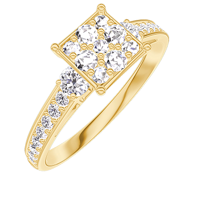 « L'ATELIER » NR 210925Pierścionek Żółte złoto 750 - Klaster naturalnych diamentów „Księżniczka” odpowiednik 1 - Kamienie boczne Diament - Oprawa Diament