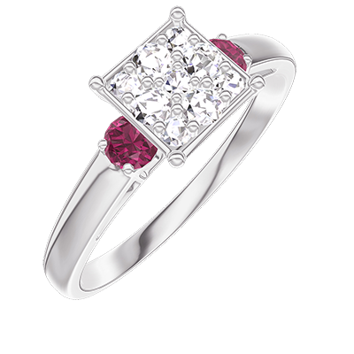 « L'ATELIER » NR 210944Pierścionek Białe złoto 375 - Klaster naturalnych diamentów „Księżniczka” odpowiednik 1 - Kamienie boczne Rubin