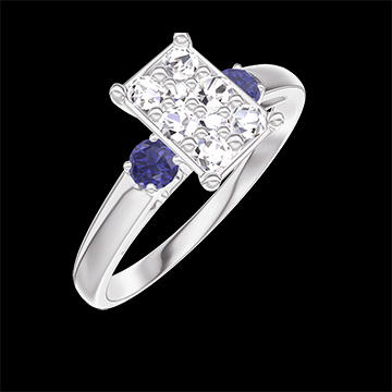 « L'ATELIER » Nº211063Pierścionek Białe złoto 750 - Klaster naturalnych diamentów Prostokąt odpowiednik 1 - Kamienie boczne Niebieski szafir 4.6