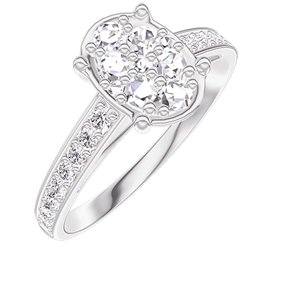 « L'ATELIER » NR 211107Pierścionek Białe złoto 750 - Klaster naturalnych diamentów Owal odpowiednik 1 - Oprawa Diament 4.7