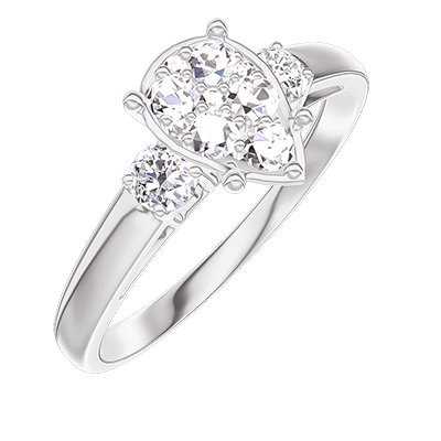 « L'ATELIER » NR 211224Pierścionek Białe złoto 375 - Klaster naturalnych diamentów Gruszka odpowiednik 1 - Kamienie boczne Diament