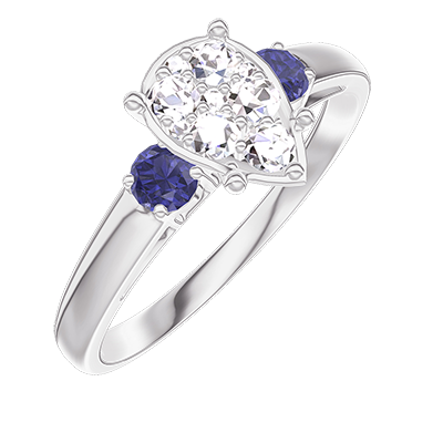 « L'ATELIER » NR 211263Pierścionek Białe złoto 750 - Klaster naturalnych diamentów Gruszka odpowiednik 1 - Kamienie boczne Niebieski szafir