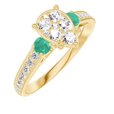 « L'ATELIER » NR 211285Pierścionek Żółte złoto 750 - Klaster naturalnych diamentów Gruszka odpowiednik 1 - Kamienie boczne Szmaragd - Oprawa Diament
