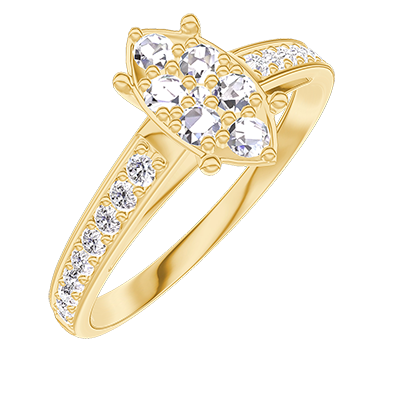 « L'ATELIER » NR 211305Pierścionek Żółte złoto 750 - Klaster naturalnych diamentów Markiza odpowiednik 1 - Oprawa Diament