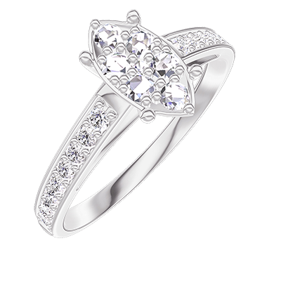 « L'ATELIER » NR 211308Pierścionek Białe złoto 375 - Klaster naturalnych diamentów Markiza odpowiednik 1 - Oprawa Diament