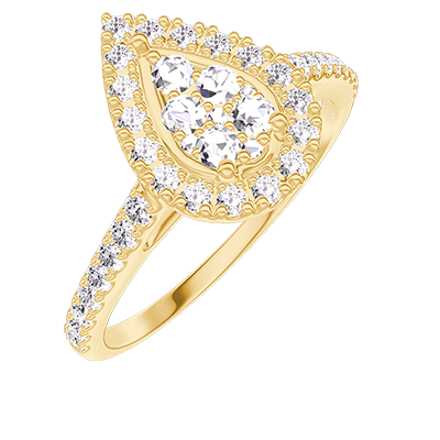 « L'ATELIER » NR 211597Pierścionek Żółte złoto 750 - Klaster naturalnych diamentów Gruszka odpowiednik 0.5 - Korona z kamieni Diament - Oprawa Diament 4.8