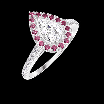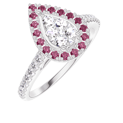« L'ATELIER » Nº211615Pierścionek Białe złoto 750 - Klaster naturalnych diamentów Gruszka odpowiednik 0.5 - Korona z kamieni Rubin - Oprawa Diament 4.8