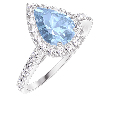 « L'ATELIER » NR 212015Pierścionek Białe złoto 375 - Niebieski topaz Gruszka 0.5 karat - Korona z kamieni Diament - Oprawa Diament 4.8