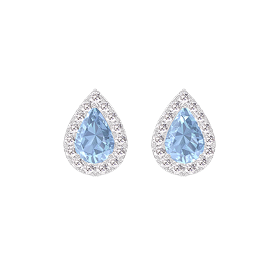 « L'ATELIER » NR 212366Kolczyki Białe złoto 375 - Niebieski topaz Gruszka 0.3 karat (2 X) - Korona z kamieni Diament