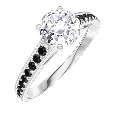 « L'ATELIER » NR 385483Pierścionek Białe złoto 375 - Diament laboratoryjny okrągły 0.7 karat - Oprawa Czarny diament 4.9