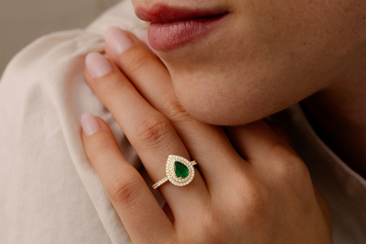 « L'ATELIER » Nº406245Pierścionek Żółte złoto 750 - Szmaragd Gruszka 0.5 karat - Korona z kamieni Diament - Oprawa Diament