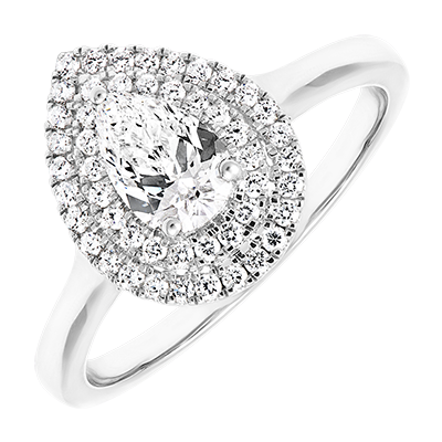 « L'ATELIER » NR 407109Pierścionek Białe złoto 375 - Diament laboratoryjny Gruszka 0.5 karat - Korona z kamieni Diament laboratoryjny