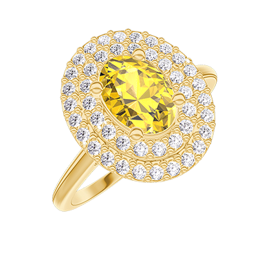 « L'ATELIER » NR 417616Pierścionek Żółte złoto 375 - Żółty szafir Owal 0.5 karat - Korona z kamieni Diament