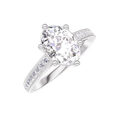 Pierścionek Białe złoto 750 - Diament laboratoryjny Owal 1 karat - Oprawa Diament laboratoryjny