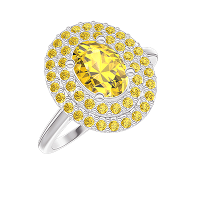 « L'ATELIER » NR 430318Pierścionek Białe złoto 375 - Żółty szafir Owal 0.5 karat - Korona z kamieni Żółty szafir
