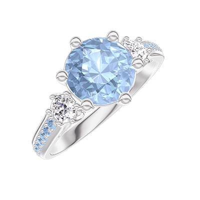 « L'ATELIER » NR 531013Pierścionek Białe złoto 750 - Niebieski topaz okrągły 1 karat - Kamienie boczne Diament - Oprawa Niebieski topaz