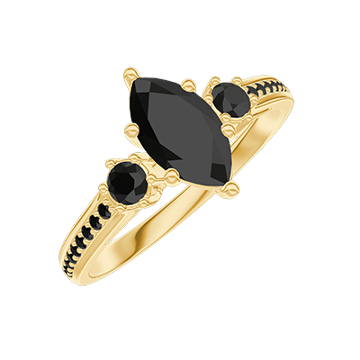 « L'ATELIER » Nº572567Pierścionek Żółte złoto 750 - Czarny diament Markiza 0.5 karat - Kamienie boczne Czarny diament - Oprawa Czarny diament