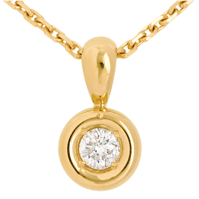 Okrągła zawieszka z diamentem zatopionym w sercu kielicha z kółkiem z żółtego złota.