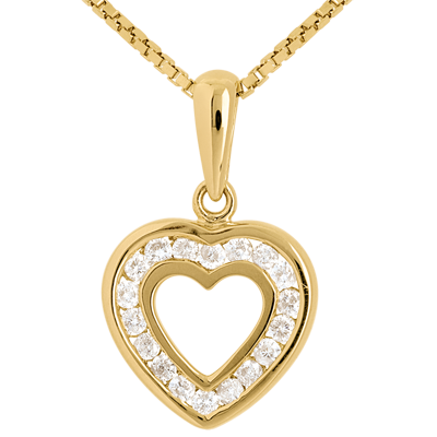 Zawieszka Serce w sercu - 18 diamentów - 0,18 karata - złoto żółte 9-karatowe
