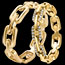 Duże kubańskie ogniwa wysadzane diamentami rozświetlają ten pierścionek z żółtego złota, nadając mu klasyczny charakter w nowoczesnej wersji.