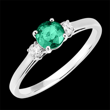 « L'ATELIER » NR 1002693Pierścionek Białe złoto 750 - Syntetyczny szmaragd Okrągły 0.5 karat - Kamienie boczne Diament laboratoryjny 4.8