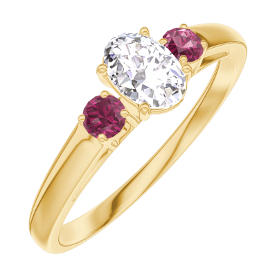 « L'ATELIER » Nº160342Pierścionek Żółte złoto 375 - Diament Owal 0.3 karat - Kamienie boczne Rubin 5